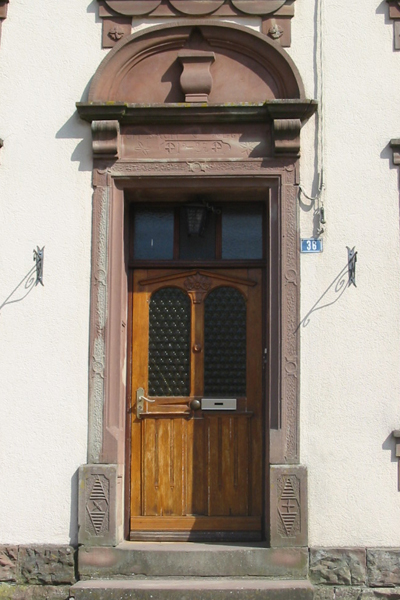 Amateurs et spécialistes d’art populaire s’accordent pour reconnaître l’importance des encadrements de porte dans la décoration de la maison rurale ancienne d’Alsace Bossue. Mais à côté des encadrements de porte, le talent des tailleurs de pierre s’est également exprimé au travers d’autres éléments du décor comme les allèges sculptées.