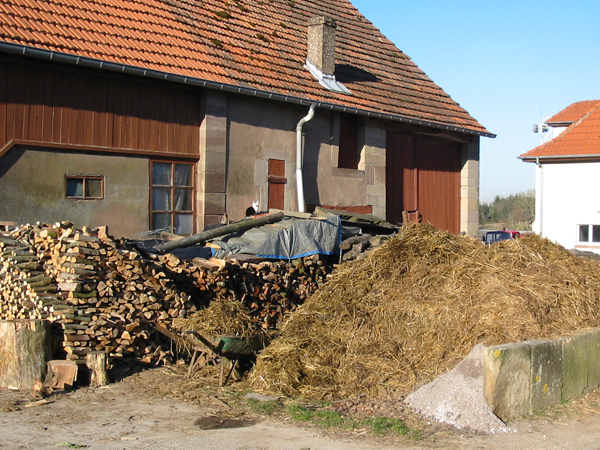 Le visiteur de passage est souvent intrigué par la largeur des « trottoirs » dans les villages en Alsace Bossue : il s’agit en fait de la survivance des anciens usoirs, ces espaces publics qui allaient des maisons jusqu’à la rue, et qui servaient à entreposer le matériel agricole, voire le tas de fumier (autrefois signe extérieur de prospérité). Ces usoirs, caractéristiques du village lorrain, sont également très présents en Alsace Bossue, où le type de construction s’apparente souvent au style de la Lorraine voisine.